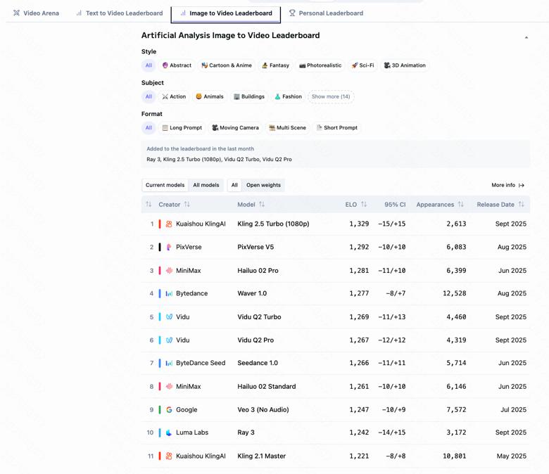 For more, click here to view the announcement from Artificial Analysis and the model release note from Kling AI.